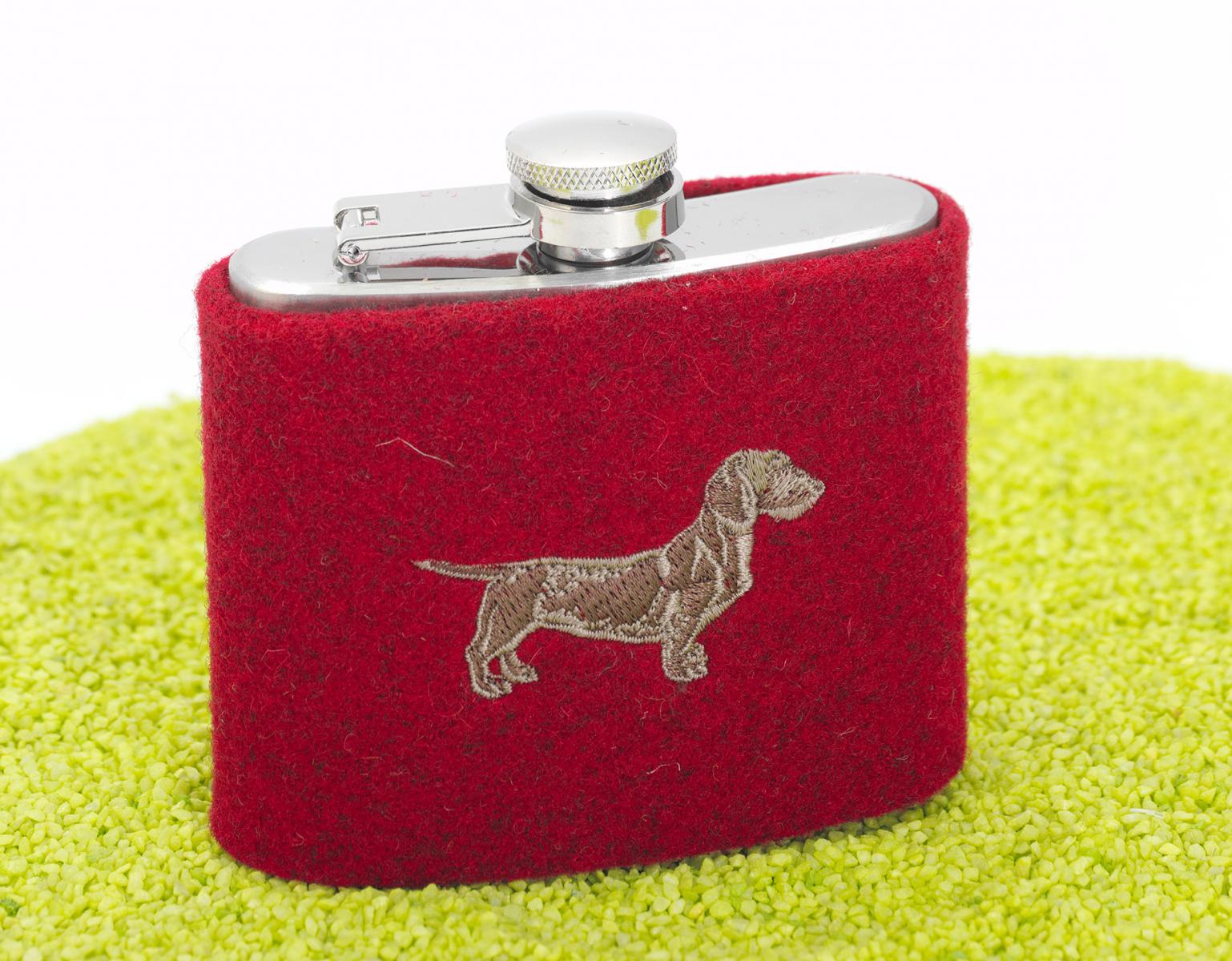 Flachmann mit Filzhülle und Dackel