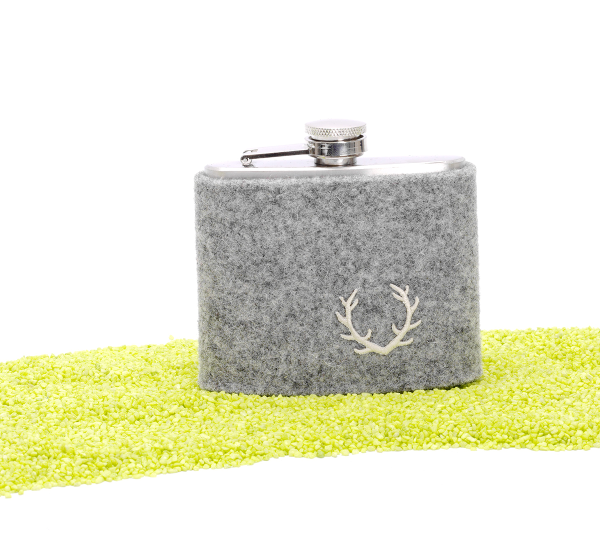 Flachmann mit Filzhülle und Hirschgeweihstickerei