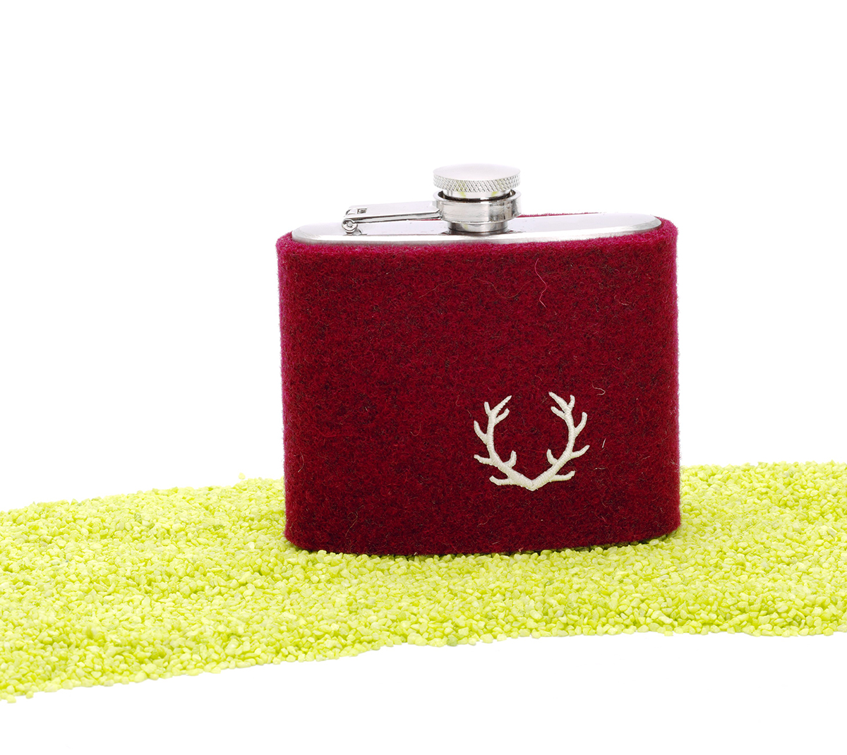 Flachmann mit Filzhülle und Hirschgeweihstickerei