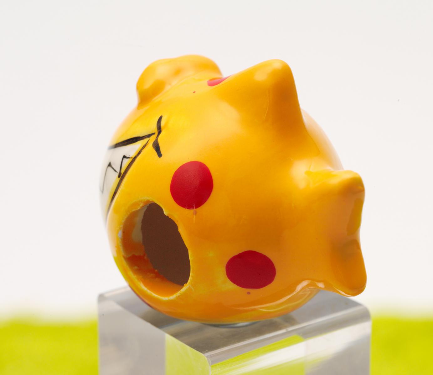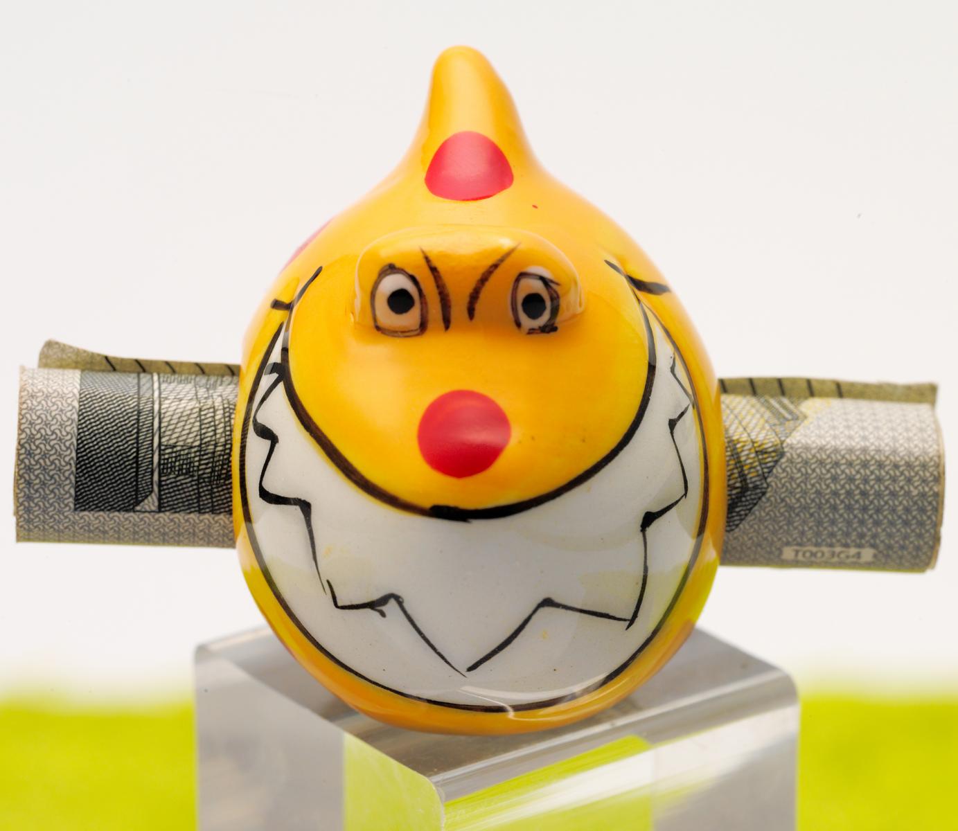 Magnet aus Porzellan Mini Sparhai Geldhai Schein-Rein gelb