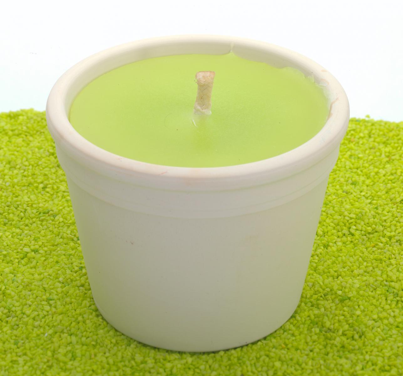 Terracottatopf mit Paraffinfüllung limette